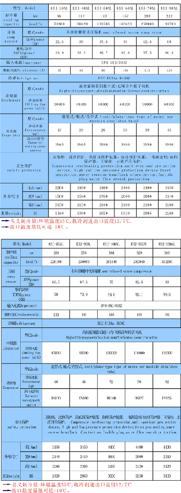 醫(yī)藥反應釜冷卻用螺桿式冷水機參數(shù)