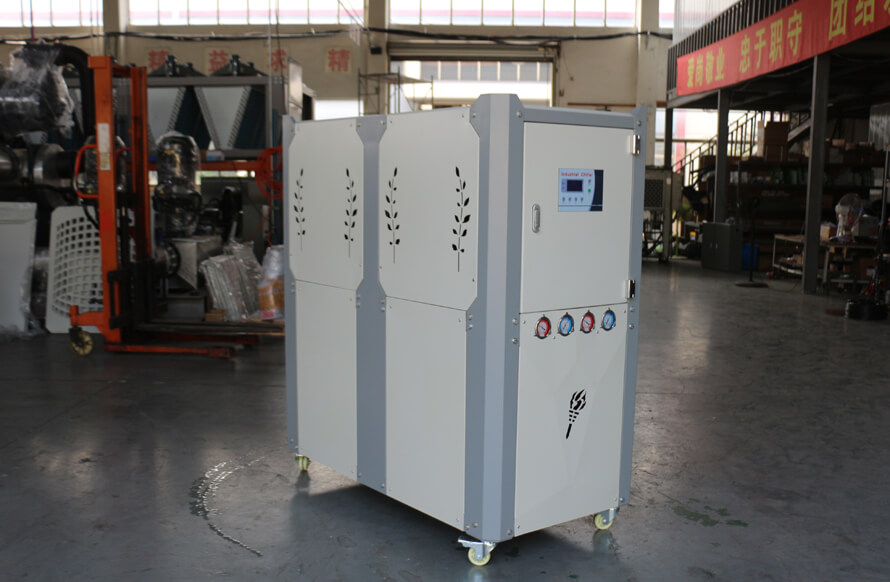 吹膜機需用工業(yè)冷水機的理由:吹膜機是一種生產(chǎn)薄膜的設(shè)備,主要通過將原料加熱融化再吹成薄膜。吹膜機在加熱塑料粒子的時候就會產(chǎn)生大量的熱量,在這種情況下,不利于薄膜的吹塑和形成,所以要把溫度控制在一定的范圍之內(nèi),冷水機是一種能提供恒溫、恒流、恒壓的冷卻水設(shè)備,通過不斷打冷凍水,可以將吹膜機生產(chǎn)中產(chǎn)生的熱量帶走。